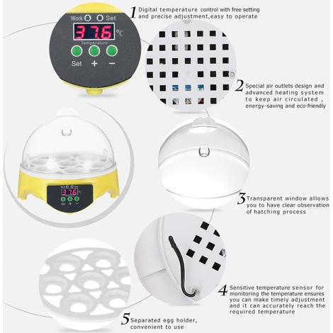 ASUPERMALL Incubateur Automatique Intelligent Pour Oeufs 7 Oeufs Ac220V Eu Plug