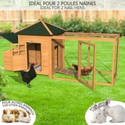 Poulailler en bois pour jardin extérieure 5 poules Cage Canard 2 perchoir Nichoir 215 x 80 x 68 cm-Modèle 149 FLEXI Extra