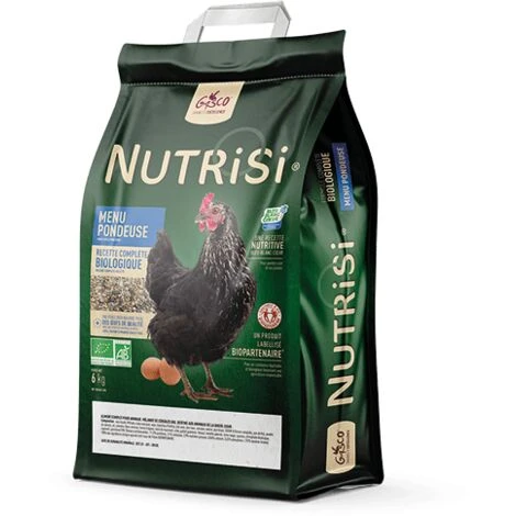 Proposez à vos poules un aliment complet, riche et varié, composé spécialement pour les pondeuses avec des ingrédients issus de l’agriculture biologique. Parmi ses céréales récoltées principalement dans le Gers, vous trouverez des graines de lin riches en oméga 3. Parfait pour récolter de bons œufs frais ! Un aliment bio complet et varié pour nourrir vos poules pondeuses Nourrir vos volailles avec une seule céréale type blé ou maïs engendre des carences importantes et ce n’est évidemment pas une bonne chose pour leur santé et leur bien-être. Opter pour un mélange composé de différentes variétés permet à l’inverse de leur proposer une alimentation riche et variée. La formule Nutrisi Menu Pondeuse Bio est validée par des nutritionnistes et conçue pour répondre spécialement à tous les besoins de vos petites pondeuses. Des ingrédients de grande qualité récoltés dans le Gers Les produits de la gamme Nutrisi proposés par Gasco sont fabriqués avec des céréales certifiées « Excellence Gers ». C’est, pour l’essentiel, d’une coopérative céréalière gersoise qu’elles proviennent. Tous les ingrédients qui composent ce mélange sont estampillés agriculture biologique et commerce équitable. Cette démarche écologique vous garantit en outre des produits d’excellente qualité. Enfin, le label Bleu Blanc Cœur permet d’aller encore plus loin dans votre démarche écocitoyenne. Avec des animaux bien nourris, vous serez vous-mêmes bien nourris !