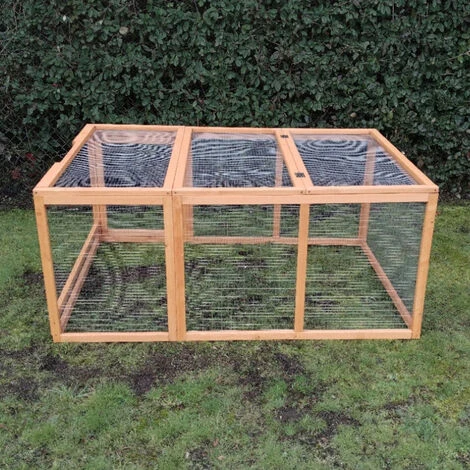 Vous aimeriez installer sur votre poulailler Farmer L ou Farmer XL une extension parc grillagé et ainsi offrir à vos poules un espace de liberté sécurisé ? Commandez cette extension de belle taille, facile à monter et parfaitement adaptée à la maison de vos volailles ! Elle est constituée du même bois labellisé FSC et ses parois sont en grillage dont le métal galvanisé est très résistant à la corrosion. Un espace de liberté sécurisé pour vos poules Elles apprécieront d’avoir un espace à leur disposition où elles pourront gratter et picorer le sol sans avoir à surveiller les alentours. Ce solide parc grillagé est constitué de montants en bois de 25 x 30 mm et ses côtés sont en grillage galvanisé, qui résiste à rouille. Le parc est équipé de deux grandes portes. L’une se trouve sur le côté et l’autre sur le dessus, offrant un accès important à l’intérieur du parc. Les deux se ferment avec des verrous métallisés. Afin de compléter votre installation Pour optimiser le bien-être de vos volailles, offrez-leur un plus grand espace en sécurisant les abords du poulailler avec un filet ou un grillage à poules. Vous pourrez ainsi les y lâcher à certains horaires de la journée pour qu’elles mettent en place leur parcours quotidien. Et lorsque vous les rentrerez, elles pourront toujours profiter de leur enclos grillagé. Les deux accessoires sont ainsi complémentaires.