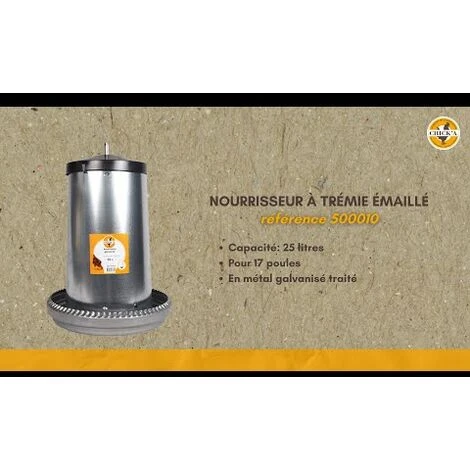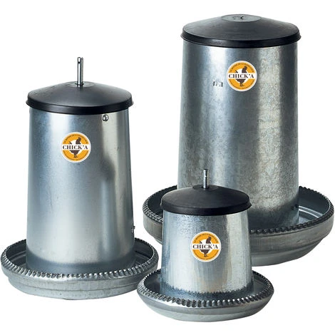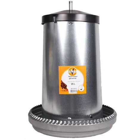 Nourrisseur à trémie en métal galvanisé traité d’une contenance de 25 litres. C’est la mangeoire idéale pour alimenter en plein air vos volailles et les petits gibiers, sans risque de gaspillage et de pollution des aliments. Le contrôle du débit de nourriture peut être réglé grâce à la crémaillère métallique. Détails du produit : Capacité: 25 litres. Pour 17 poules