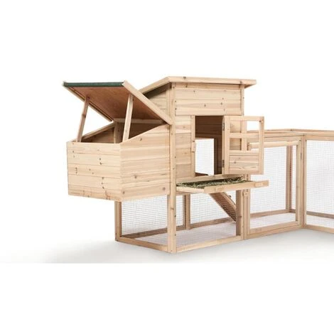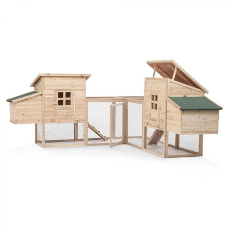Vous souhaiteriez avoir des poules dans votre jardin, sans qu’elles ne se baladent partout ni qu’elles se sentent enfermées dans un poulailler trop petit ? Alors, optez pour ce poulailler. Il a été conçu de façon à laisser de la liberté aux poules, de se balader d’une partie à l’autre de celui-ci. Elles pourront profiter des différents coins de ce poulailler, que ce soit à l’ombre dans les petites maisonnettes en bois ou à l’extérieur derrière les espaces grillagés pour leur permettre d’avoir une vue sur le jardin & profiter du soleil. Ce poulailler sera parfait pour vos poules qui seront confortablement installées et pourront vous offrir de bons oeufs frais !