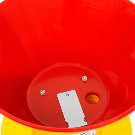 Le puissant moteur électrique de 1100 watts et la lame de coupe robuste assurent un débit élevé et sont durables. La trémie contient 7 kg et la capacité de la trémie est de 52 litres. Le réservoir a 2 poignées latérales pour un transport facile.