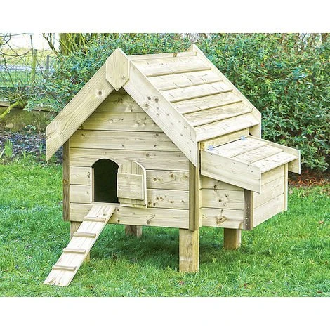 Le poulailler Ardennais grand modèle autoclave est un poulailler solide et rustique. Ce grand poulailler est livré monté ! Poulailler en bois traité autoclave épais (16 mm), il est prévu pour durer dans le temps, sans traitement supplémentaire. Surélevé sur 4 pieds de grosse section, il est à l’abri des intempéries. Accès à l’abri par une échelle à barreaux, et disposent à l’intérieur de 2 perchoirs et d’un pondoir confortable. Le toit s’ouvre en basculant vers l’arrière, offrant un accès pratique pour le contrôle et le nettoyage. Le pondoir est accessible de l’extérieur et une porte à verrou permet d’enfermer les volailles. Panneaux 16 mm, tasseaux 26 x 46 cm, toiture en bois traité autoclave. Capacités 4 à 7 poules, dimensions au sol 86 x 86 cm, dimensions hors tout 111 x 128 x 135 cm.