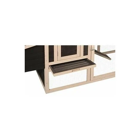 Plateau en plastique pour un nettoyage facile ; structure en bois renforcée / 2 pondoirs à toit ouvrant verrouillable / 1 perchoir à lintérieur / Fenêtre en plexiglas / Bac de fleurs – de plantation dherbes aromatiques sur la partie supérieure / Nous vous déconseillons de verser du sable directement dans le bac, sans protection. Nous vous conseillons plutôt de planter les fleurs – herbes aromatiques dans des pots en plastique que vous placerez dans le bac en bois. / Fabriqué en bois durable – respectueux des forêts / Plateau de rechange : 310003