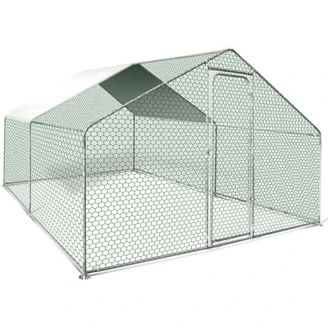 Conçu et pensé par des éleveurs pro, cet enclos robuste en acier galvanisé d’une maxi surface de 12 m² permet à votre basse-cour de gambader en toute sécurité !Ce parc grillagé (mailles environ 25×25 mm / 1 mm d’épaisseur) offre un espace bien fermé pour protéger vos volailles des prédateurs comme les renards. Pratique avec sa large porte à fermeture sécurisée par loquet (tube grand diamètre 32 mm), cet enclos est l’habitat extérieur idéal pour un élevage de 10 à 14 poules.Ses grandes dimensions, longueur 4 M x largeur 3 M x hauteur 2 M, permettent à vos animaux une liberté de mouvement et un espace optimal pour leur plus grand confort.Equipé d’une bâche de toit waterproof et anti-UV 150 gr/m² en polyester, cette volière offre une partie ombragée et une protection contre la pluie.Astuce : pensez à ancrer les pieds de votre enclos pour qu’aucun intrus ne puisse creuser et passer par dessous sous votre grillage.Vous pouvez compléter cette volière en installant un poulailler bois à l’intérieur pour permettre la ponte de vos poules et ainsi récolter de bons œufs frais tous les jours.Dimensions de l’enclos pour poules 12 m²- Dimensions totales hors-tout : Longueur 400 x largeur 300 x Hauteur 200 CM- Diamètre des tubes de la structure : 25 MM- Taille des mailles : environ 25 x 25 MM – Grillage triple torsion- Piquet d’ancrage non fourni- Grillage vert ou gris selon arrivage- À monter soi-mêmePour plus de facilité de montage, nous vous conseillons d’être 2 personnes (temps estimé : 60 min).* Poulaillers en bois vendus séparément sur notre boutique en ligne.Retrouvez toutes nos différentes tailles d’enclos disponibles sur notre boutique en ligne :- Enclos poulailler 3m² parc grillagé- Enclos poulailler 6 m² parc grillagé- Enclos poulailler 9 m² parc grillagé- Enclos poulailler 16 m² parc grillagé- Enclos poulailler 18 m² parc grillagé- Enclos poulailler 24 m² parc grillagéDécouvrez également toute notre gamme d’enclos poulaillers sur notre boutique en ligne ! – HORS CORSE -article non livrable en Corse