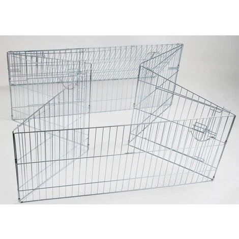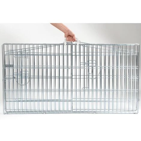 À l’intérieur de cet enclos, vos petits animaux de compagnie peuvent grignoter des légumes frais et courir. Le matériau en métal galvanisé et les couvercles articulés le rendent robuste et durable. Il est facile à assembler, à installer et à déplacer. Un parasol et une poignée de transport sont inclus.