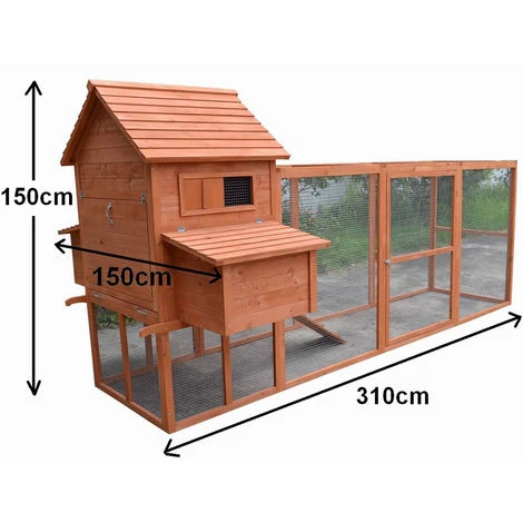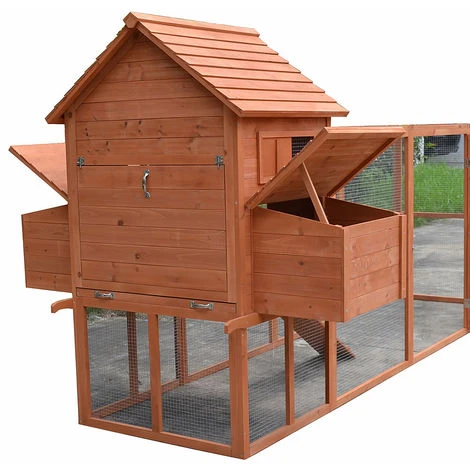Poulailler XXL avec grand compartiment en plein air pour l’Ă©levage d’animaux d’Ă©levage adaptĂ©s Ă l’espèce.
