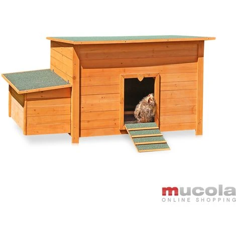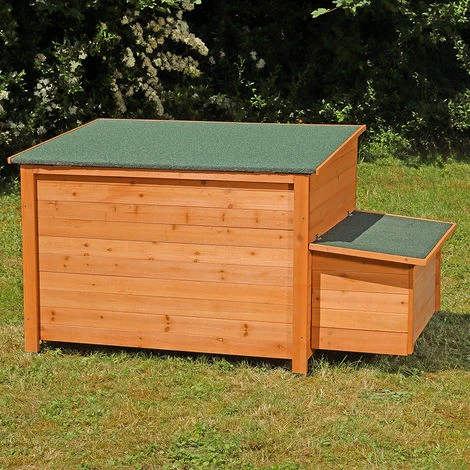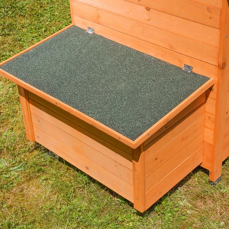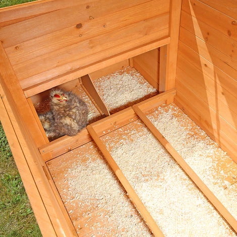 Ce poulailler magnifique et surtout bien pensé offre à vos poulets un logement adapté à l’espèce, avec des possibilités de retraite appropriées et la liberté de mouvement nécessaire. Le nichoir latéral avec un total de 2 nids et un couvercle qui peut être ouvert vers le haut offre beaucoup d’espace pour les poules et vous permet d’enlever les œufs frais sans grand effort. En séparant les nichoirs du reste de la grange, ils restent propres et permettent aux poulets de pondre sans être dérangés. À l’avant du poulailler, il y a une entrée verrouillable pour les poulets et une rampe par laquelle les poulets entrent en plein air. Les animaux sont protégés du froid et de l’humidité par la distance prévue entre le sol et le plancher du poulailler. Pour nettoyer le poulailler, vous pouvez ouvrir le toit grâce à ses charnières. La construction stable du toit en bois et la couverture imperméable supplémentaire offrent à vos poulets une protection sûre contre la pluie, la grêle et la neige et assurent une longue vie au poulailler.