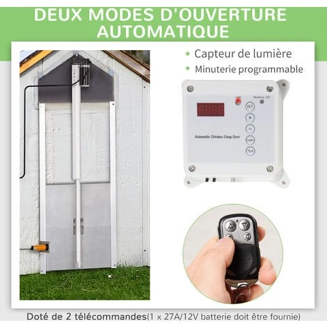 PawHut Porte Automatique Pour Poulailler – Minuterie, Capteur De Luminosité, 2 Télécommandes, Kit Installation Inclus – Alu. ABS Gris – Gris