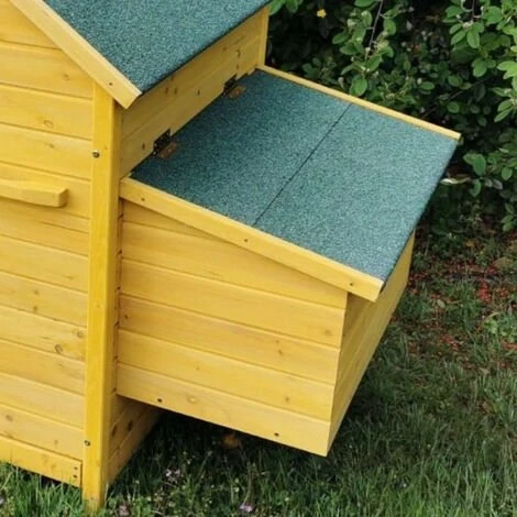 Pondoir additionnel pour le poulailler Bassette XL dans sa finition en shingle vert. Dimensions : L. 74 x l. 39,2 x H. 35 cm.