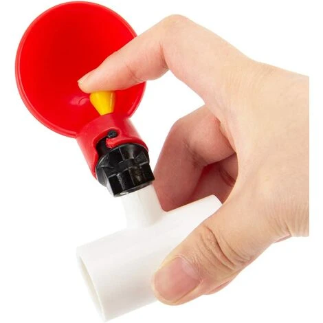 Entièrement automatique : La tasse a une gâchette jaune qui attire les poulets Ă picorer. Lorsque les poulets picorent la gâchette jaune, la valve libère automatiquement de l’eau dans le gobelet en plastique rouge, leur fournissant de l’eau.