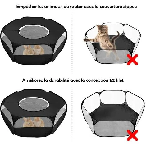 Transparente et respirante : la cage pliable pour animal de compagnie est entourĂ©e de filets, les animaux peuvent ĂŞtre observĂ©s Ă tout moment et ces petits animaux peuvent ĂŞtre vus clairement dans cette cage transparente, tout en assurant la ventilation du parc et en Ă©liminant les odeurs. C’est un endroit confortable et sĂ»r oĂą les animaux restent pour jouer Ă des jeux. Vos animaux de compagnie vont l’adorer