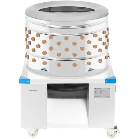Vous élevez de la volaille mais n’avez pas le temps de plumer à main vos poulets et canards ? Alors la plumeuse rotative WI-PPM-60 de Wiesenfield est la solution idéale, car elle accomplit en quelques secondes cette tâche sinon laborieuse et chronophage. L’appareil de qualité plume de 5 à 6 poulets par cycle grâce à son puissant moteur de 1 500 W et à son tambour tournant à une vitesse de 280 tr/min. Ses 181 doigts en caoutchouc et son système d’arrosage intégré prennent en charge le plumage. La machine est équipée d’une grande chute qui évacue les plumes, sous laquelle un récipient de collecte peut être placé. Comme la plumeuse à poulet est presque entièrement faite d‘inox durable et résistant à la corrosion, elle est indispensable pour les agriculteurs et les éleveurs amateurs.