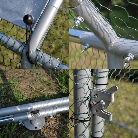 Vu la taille généreuse de la cage, il serait bien trop encombrant de la faire rentrer à l’intérieur. Ainsi, pour protéger vos animaux de la chaleur ou du vent qui risque de les fragiliser, le toit de l’enclos est muni d’une bâche étanche et résistante aux rayons UV. Grâce à la taille de 2 x 3 x 2 m du toit solaire, les animaux peuvent choisir à leur guise une place au soleil ou à l’ombre.