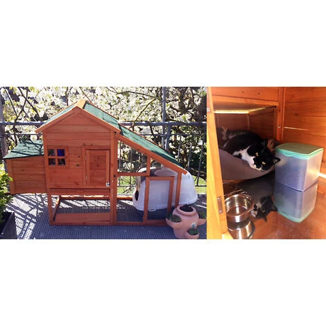 Nous vous présentons un poulailler en bois d’épicéa avec les dimensions extérieures suivantes : 172 x 66 x 120 cm (Lo x La x H). Dans le dortoir intégré se trouvent un perchoir et un nichoir. Le toit en bois bien calfeutré est isolé au moyen de bitume, gardant la totalité du poulailler bien à l’abri de la pluie. Un nettoyage simple et hygiénique est facilité par le bac à crottes en tôle galvanisé, que vous pouvez retirer facilement. Une rampe antidérapante relie l’enclos à la maisonnette. Pour que toutes les parties du poulailler restent accessibles pour le nettoyage ou le contrôle des nids, le poulailler est équipé d’un toit rabattable. Par ailleurs, le poulailler ainsi que l’enclos sont chacun doté d’une porte.